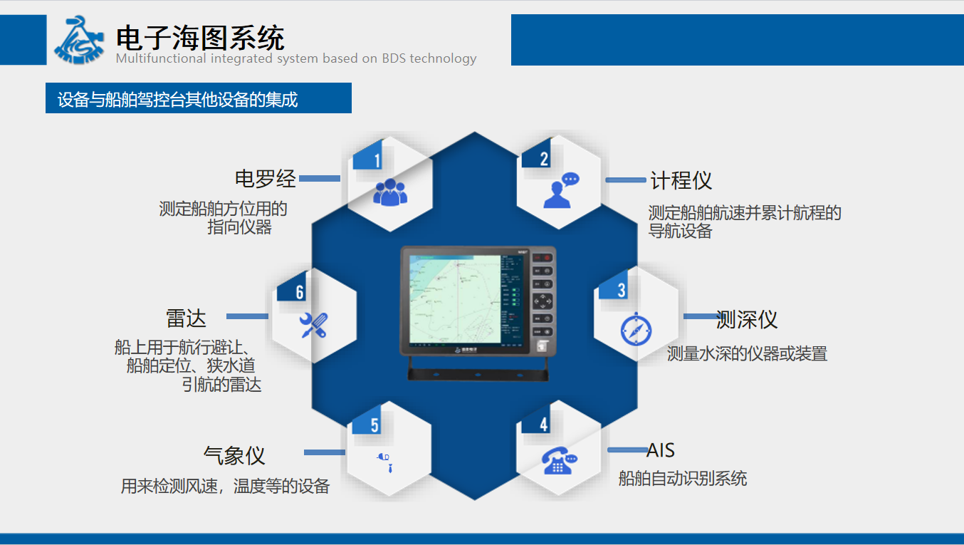 支持AIS、气象、雷达、GPS、罗经、北斗,视频等多种设备,实现船舶的智能导航。