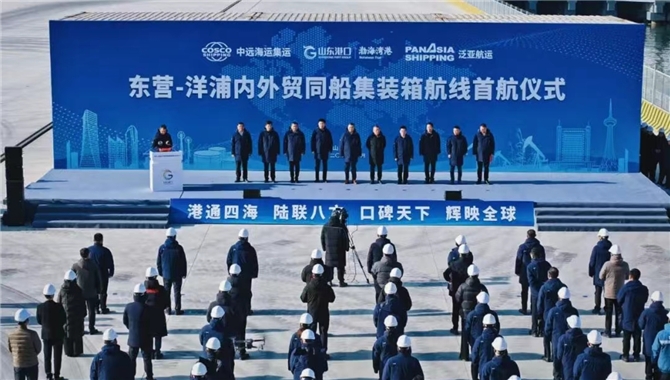 1月12日 泛亚航运“东营—小铲滩”路径开通 山东直达海南 齐鲁大地与热带琼州之间 架起了一座 “海上直达桥” 泛亚航运以航线为纽带 助力两地产业相携,机遇共享 东营港地处渤海之滨 随着5万吨级集装箱泊