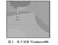 采用大小不同的两张海图来比较直接绘制海图在面板上和通过图片绘制在面板上这两种方法的显示效率。两张海图分别是7Csahara.000(文件大小21KB)和EA200001.000(文件大小2729KB)。分别如图1和图2所示