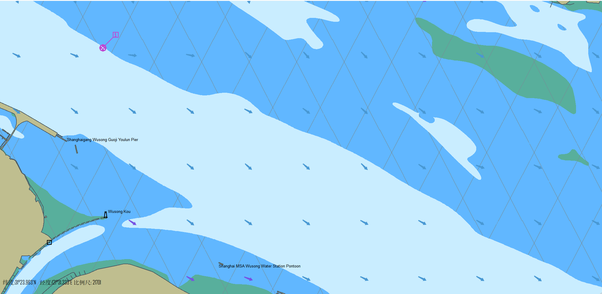 支持S111数据集解析与渲染,包括表层洋流、海流、海温、海压等。
